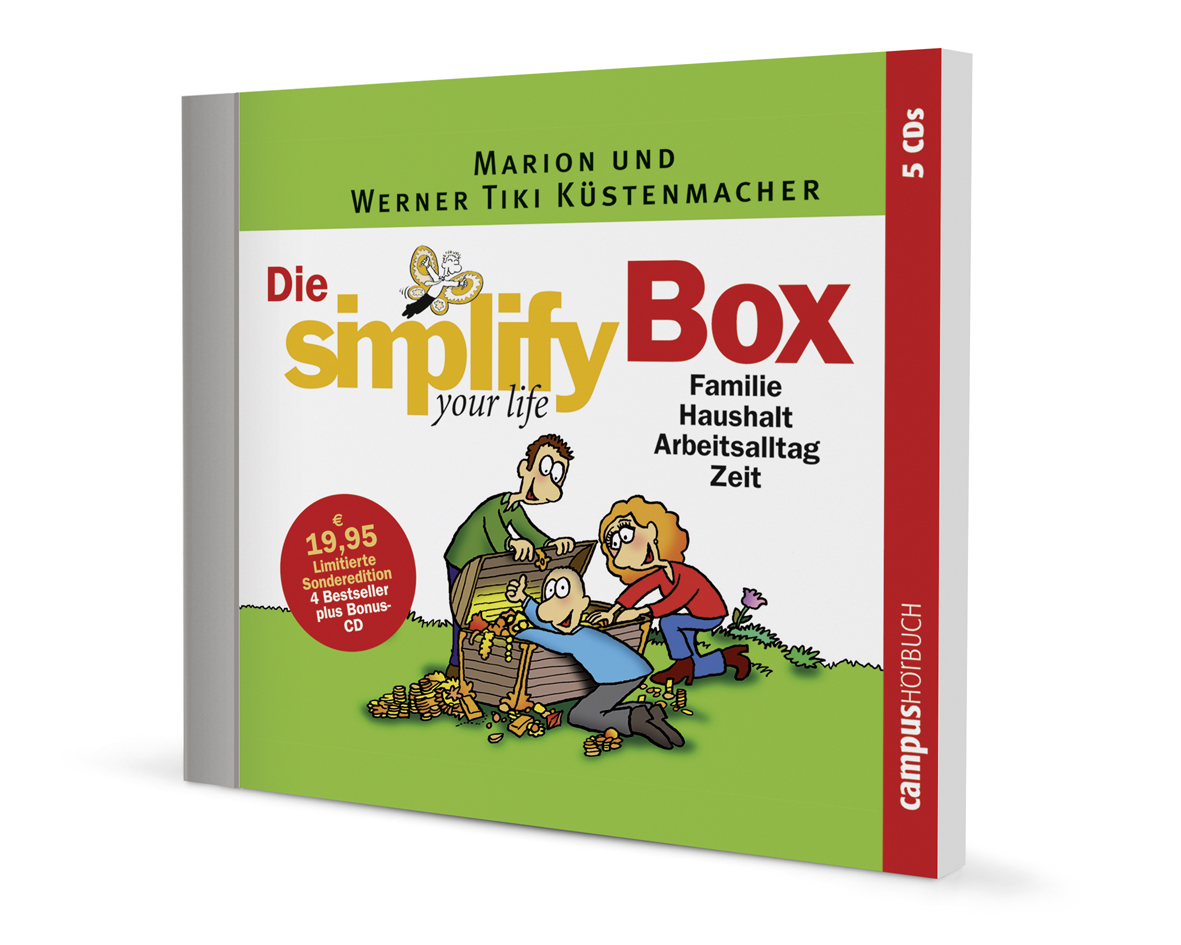 »simplify« ist ein Erfolgsprinzip, das seinen zahlreichen Fans ein einfacheres und glücklicheres Leben in einer immer komplizierter werdenden Welt beschert. Ganz gleich, ob als Weltbestseller im Buchformat, als Hörbuch, E-Book oder »simplify«-Special zu Themen wie Kindererziehung, Zeit, Arbeitsalltag.