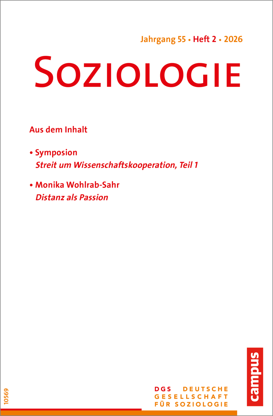 Die »Soziologie« ist das Forum der Deutschen Gesellschaft für Soziologie (DGS). Die Zeitschrift fördert die Diskussion über die Entwicklung des Fachs, informiert über die Einbindung der deutschen Soziologie in ihren europäischen und weltweiten Kontext und dient dem Informationsaustausch über die Arbeit in den Sektionen und Arbeitsgruppen innerhalb der DGS.