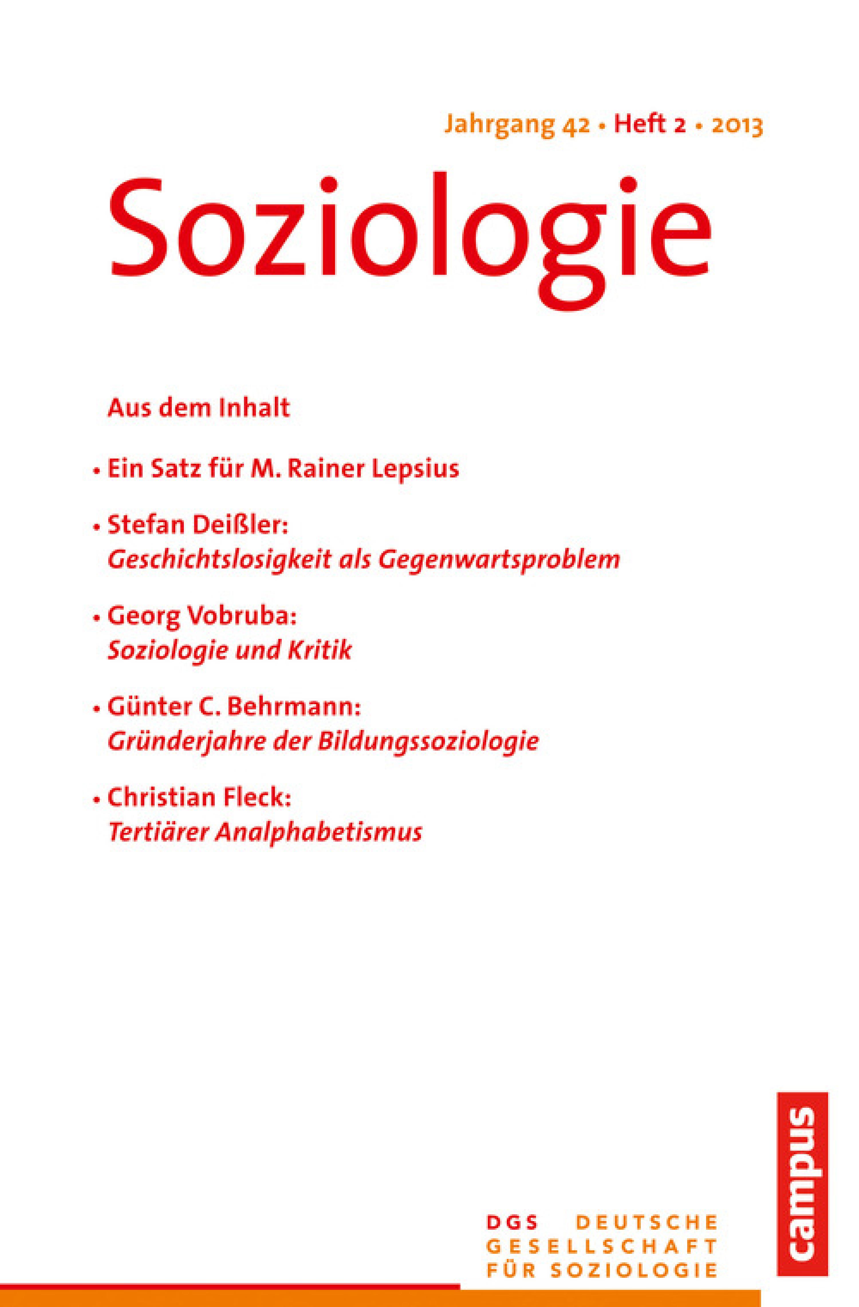 Die Zeitschrift »Soziologie« ist das offizielle Mitteilungsblatt der Deutschen Gesellschaft für Soziologie (DGS). Die Zeitschrift dient dem Informationsaustausch über die Arbeit in den Sektionen und Arbeitsgruppen innerhalb der Deutschen Gesellschaft für Soziologie, fördert die Diskussion über die Entwicklung des Fachs und informiert über die Einbindung der deutschen Soziologie in ihren europäischen und weltweiten Kontext.