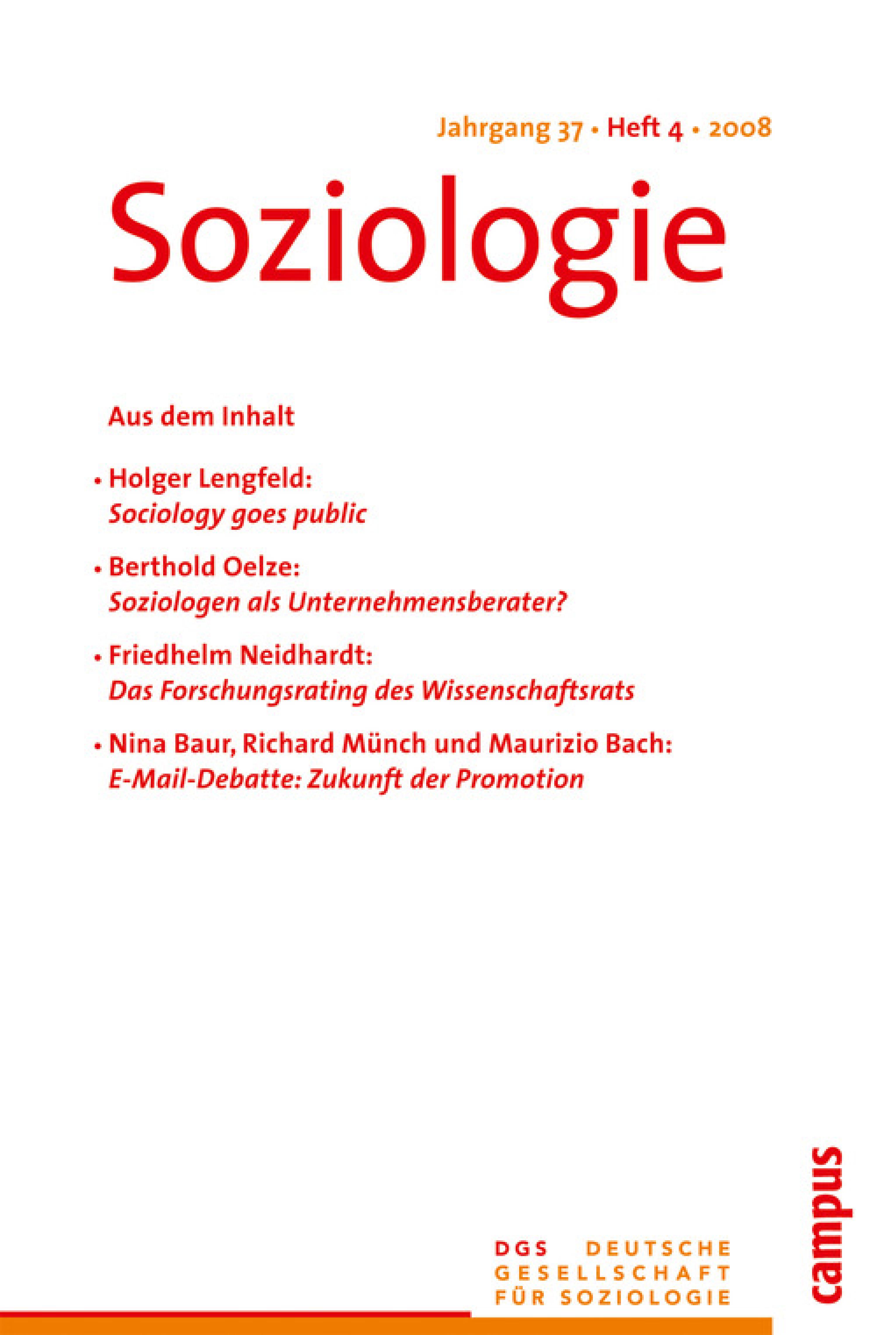 Die Zeitschrift »Soziologie« ist das offizielle Mitteilungsblatt der Deutschen Gesellschaft für Soziologie (DGS). Sie dient dem Informationsaustausch über die Arbeit in den Sektionen und Arbeitsgruppen innerhalb der DGS, fördert die Diskussion über die Entwicklung des Fachs und informiert über die Einbindung der deutschen Soziologie in ihren europäischen und weltweiten Kontext.