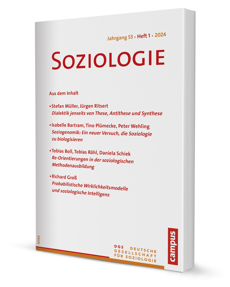 Die »Soziologie« ist das Forum der Deutschen Gesellschaft für Soziologie (DGS). Die Zeitschrift fördert die Diskussion über die Entwicklung des Fachs, informiert über die Einbindung der deutschen Soziologie in ihren europäischen und weltweiten Kontext und dient dem Informationsaustausch über die Arbeit in den Sektionen und Arbeitsgruppen innerhalb der DGS.